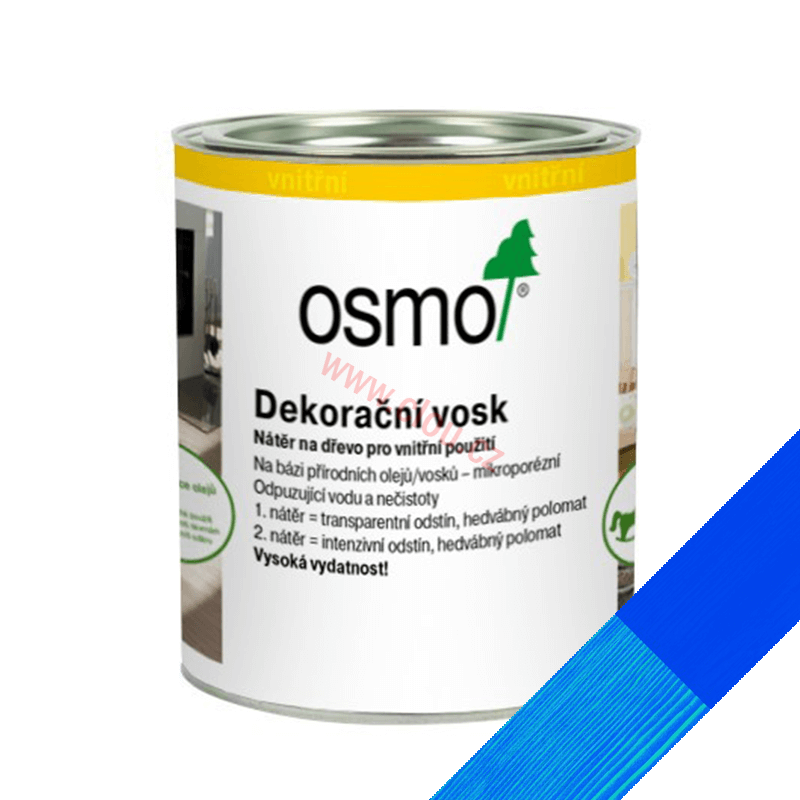 Dekorační vosk je intenzivně zbarvený, je polomatný nebo matný a je určený k použití v interiéru.