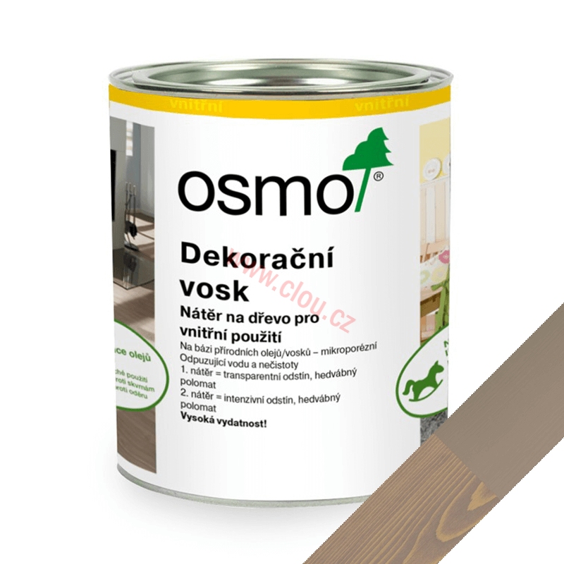 Dekorační vosk je intenzivně zbarvený, je polomatný nebo matný a je určený k použití v interiéru.