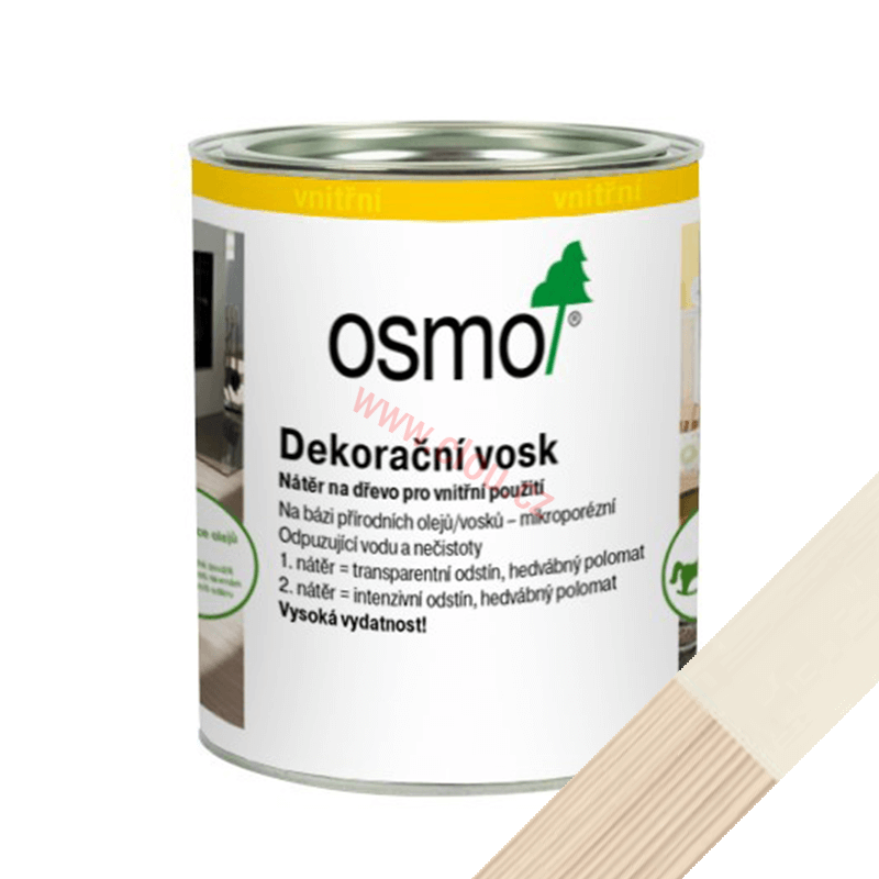 Dekorační vosk je intenzivně zbarvený, je polomatný nebo matný a je určený k použití v interiéru.