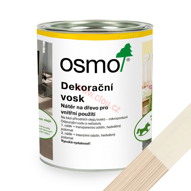 Dekorační vosk vytvoří povrch odpuzující vodu a nečistoty – je odolný při stírání na vlhko a rovněž je odolný vůči skvrnám. Všechny dekorační vosky lze vzájemně míchat nebo je lze smíchat s bezbarvým Tvrdým voskovým olejem Original.