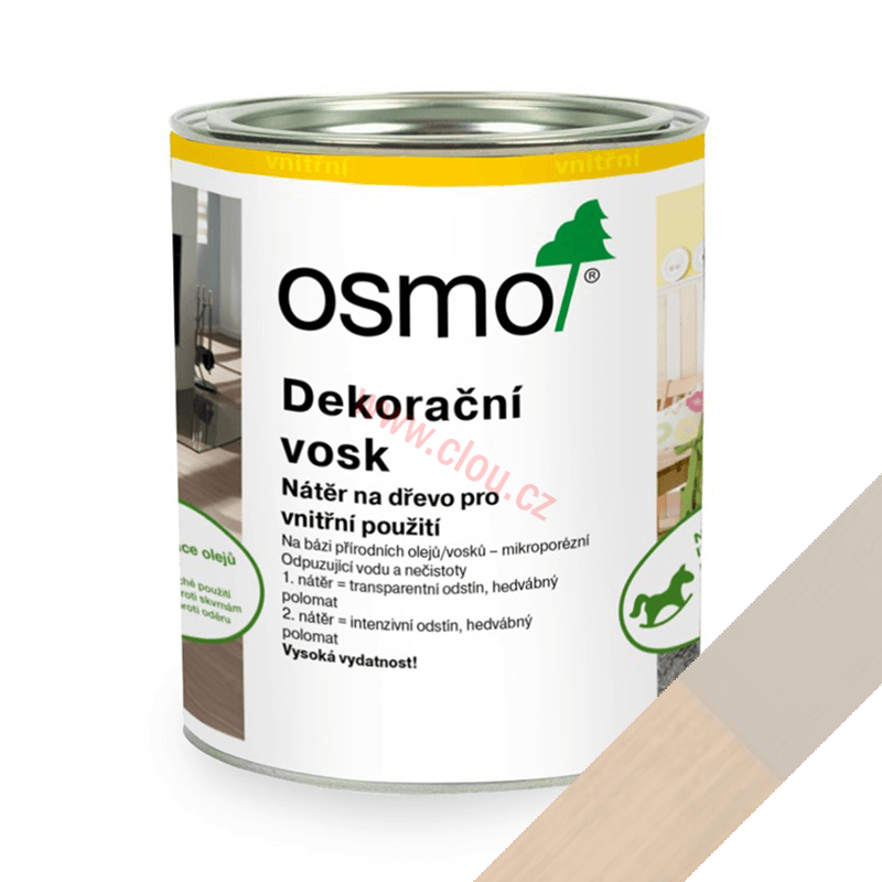 Dekorační vosk vytvoří povrch odpuzující vodu a nečistoty – je odolný při stírání na vlhko a rovněž je odolný vůči skvrnám. Všechny dekorační vosky lze vzájemně míchat nebo je lze smíchat s bezbarvým Tvrdým voskovým olejem Original.