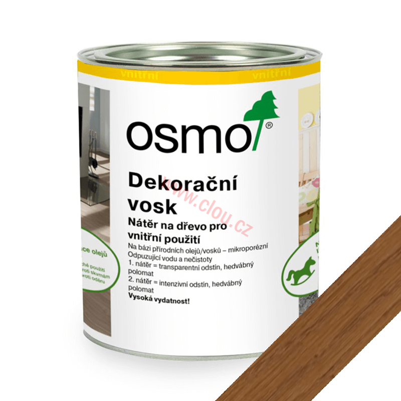 Dekorační vosk je transparentně zbarvený nebo intenzivně zbarvený, je polomatný nebo matný a je určený k použití v interiéru.