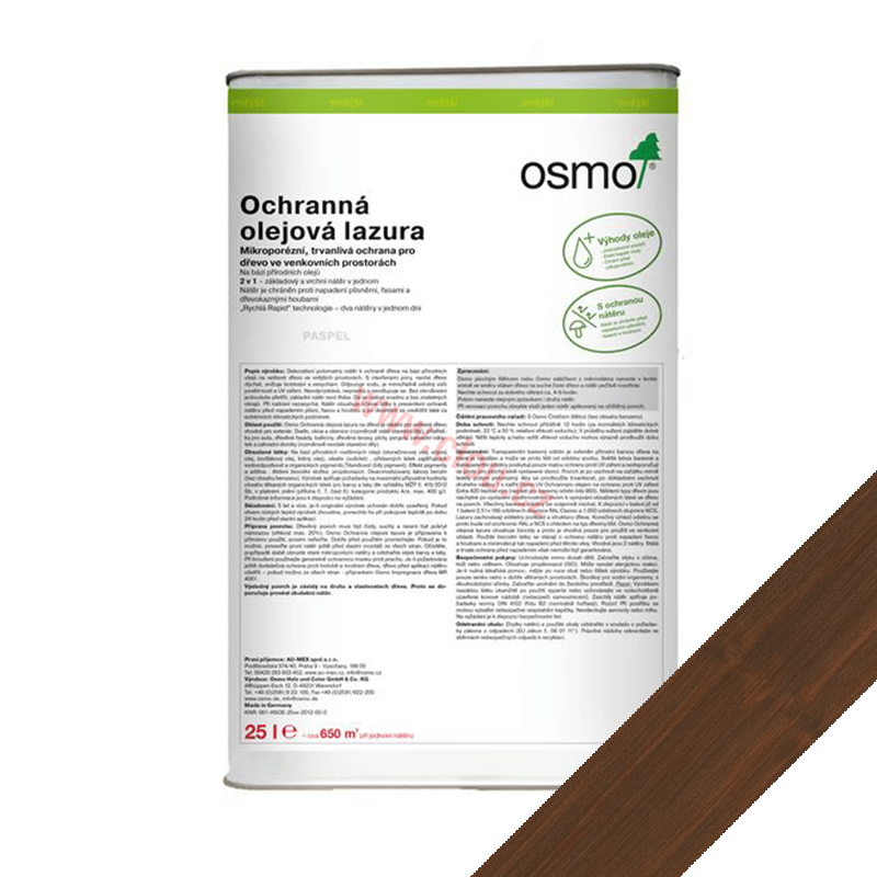 Ochranná olejová lazura je transparentní, polomatná a určená k použití venku. Je vyrobená na bázi přírodních olejů (slunečnicový olej, sójový olej, bodlákový olej, lněný olej), sikativ (sušidel) a přídavných látek zajišťujících vodoodpudivost. Nátěr s otevřenými póry nechá dřevo dýchat, snižuje bobtnání a sesýchání dřeva. Lazura neodprýskává, nepraská a neodlupuje se. Nátěr odpuzuje vodu, je mimořádně odolný vůči povětrnosti a UV záření. Lazura sdružuje 2 v 1 – základový a vrchní nátěr v jednom. Vrchní nátěr chrání proti napadení plísněmi, řasami a dřevokaznými houbami. Aktivní složka je propikonazol. Použité rozpouštědlo je dearomatizovaný lakový benzín (bez obsahu benzenu). „Rychlá“ technologie schnutí znamená, že stihnete udělat dva nátěry v jednom dni.