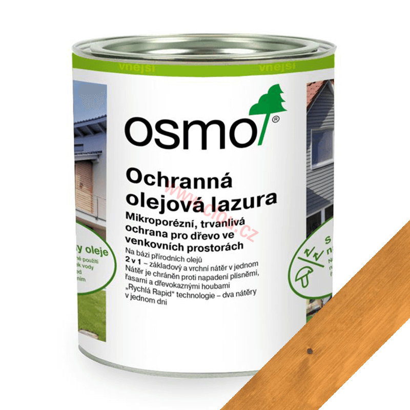 Ochranná olejová lazura je transparentní, polomatná a určená k použití venku. Je vyrobená na bázi přírodních olejů (slunečnicový olej, sójový olej, bodlákový olej, lněný olej), sikativ (sušidel) a přídavných látek zajišťujících vodoodpudivost. Nátěr s otevřenými póry nechá dřevo dýchat, snižuje bobtnání a sesýchání dřeva. Lazura neodprýskává, nepraská a neodlupuje se. Nátěr odpuzuje vodu, je mimořádně odolný vůči povětrnosti a UV záření. Lazura sdružuje 2 v 1 – základový a vrchní nátěr v jednom. Vrchní nátěr chrání proti napadení plísněmi, řasami a dřevokaznými houbami. Aktivní složka je propikonazol. Použité rozpouštědlo je dearomatizovaný lakový benzín (bez obsahu benzenu). „Rychlá“ technologie schnutí znamená, že stihnete udělat dva nátěry v jednom dni.